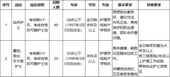 招聘岗位:护士10名
