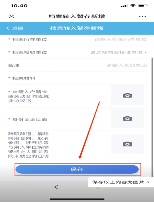 输入基本信息并上传所需证明材料(注:如毕业生档案转入需上传本人户口页及身份证正反面照片。离职转入需上传本人户口页及身份证正反面照片与离职证明)
