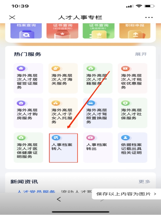 点击人事档案转入