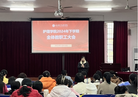 为深入贯彻学习党的伟大教育家精神,落实以立德树人为根本,扎实推进护理学院教育、教学和学生思想政治工作,全面总结本学期工作要点与亮点,明确下一步发展方向,进一步总结成绩、提炼经验、查找不足。1月13日下午,护理学院在一教学楼109A召开期末全体教职工大会。