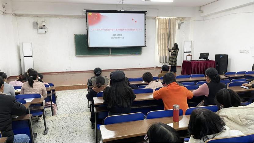 唐利亚从历史逻辑、现实逻辑和实践逻辑三个角度解释了《决议》出台的必要性;从关于制定《决议》的顶层战略谋划、关于党中央高度重视、习近平总书记亲自主持《决议》起草和关于指导《决议》起草的三条重要原则三个维度说明了《决议》起草过程;然后组织学习了《决议》的主要内容。