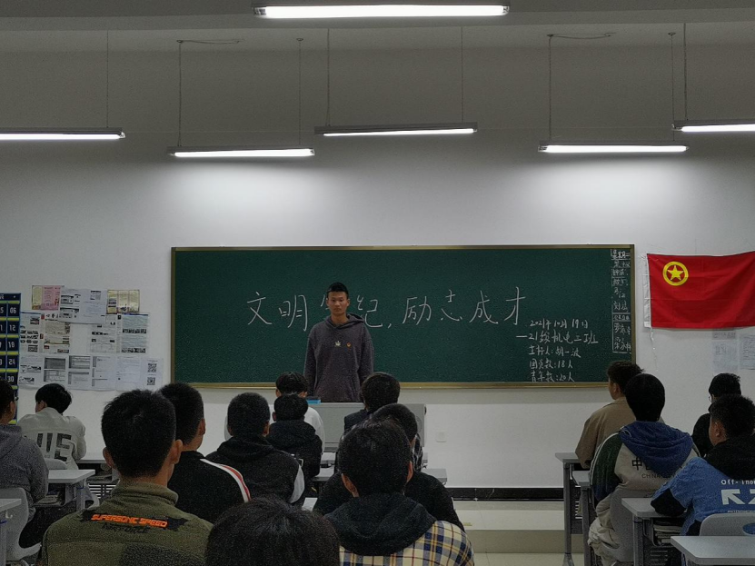 为进一步做好文明创建工作,提高广大学生的文明素养和思想道德素质,激励学生志存高远、勤奋学习,10月19日,校团委在全校开展了“文明守纪,励志成才”主题团日活动。