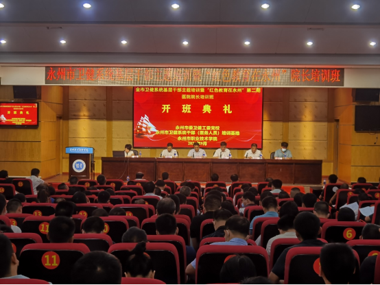 为贯彻落实习近平总书记“七一”重要讲话精神以及考察湖南重要讲话精神,深入开展“红色教育在永州”线上学习,线下实践活动,推进红色教育“进医院”,9月27日上午9时,全市卫健系统基层干部主题培训暨“红色教育在永州”第二期医院院长培训班在永州职业技术学院信息工程学院举行了开班仪式。永州职业技术学院党委书记黄小明,市委组织部副部长裴春雷,市卫健委党组书记刘建能,市卫健委党组成员、副主任刘建雄,市卫健委四级调研员吴明珠,市委组织部干部科科长吴嘉出席,市卫健委、市委卫健工委党校、市卫健系统干部教育培训基地、永州职业技术学院相关工作人员以及来自全市240余名基层医院院长参加。仪式由市卫健委党组成员、副主任刘建雄主持。