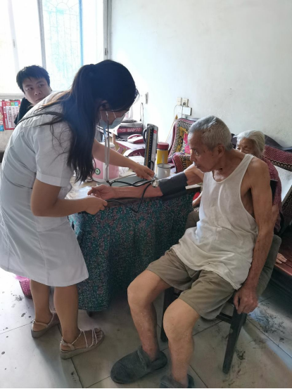 图为85岁高龄的吴万清老师接受检查并接种新冠疫苗