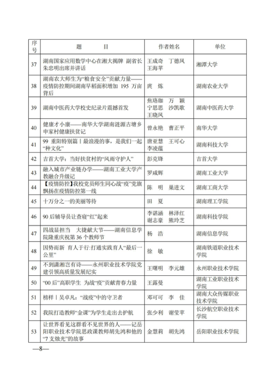 《关于公布2020年度湖南教育好新闻获奖名单的通知》中获悉,我校王曙明、李元雄老师的新闻作品《不到潇湘岂有诗——永州职业技术学院党建引领高质量发展纪实》荣获三等奖,成为全省为数不多获此荣誉的高职院校。