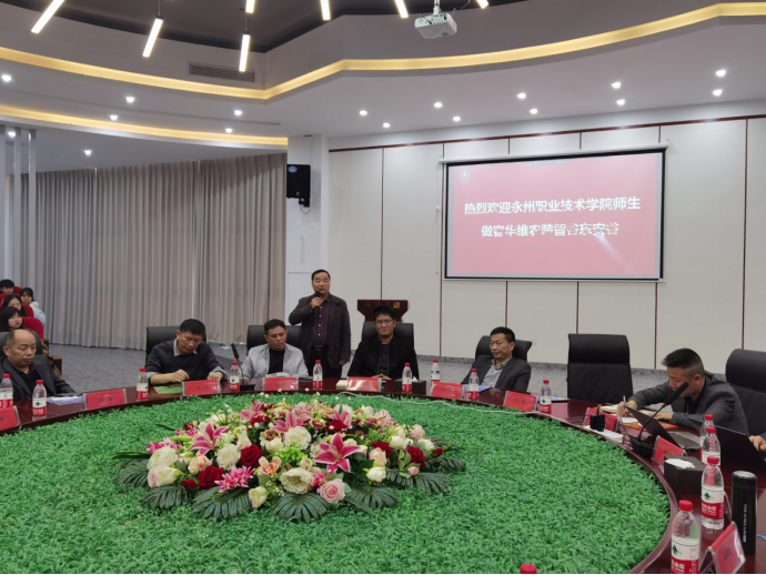 会上,东安谷厂长匡世斌介绍了华维集团的发展历程,华维集团以华地上万物,维至善初心,汇天下甘泉,丰家国仓廪为使命,是一家集智慧灌溉、可控农业、智慧水务等于一体的股份制国家高新技术企业,被业界誉为“智慧灌溉的‘华为’、‘一带一路’的使者”和“世界现代设施农业中国方案的缔造者”。华中区域总经理徐广周应师生们盛情邀请为同学们分享了可控农业发展的历程和未来农业的发展趋势。同时诚挚表达了与我校共建产业学院、实训基地建设、人才培养与交流等方面合作意愿。