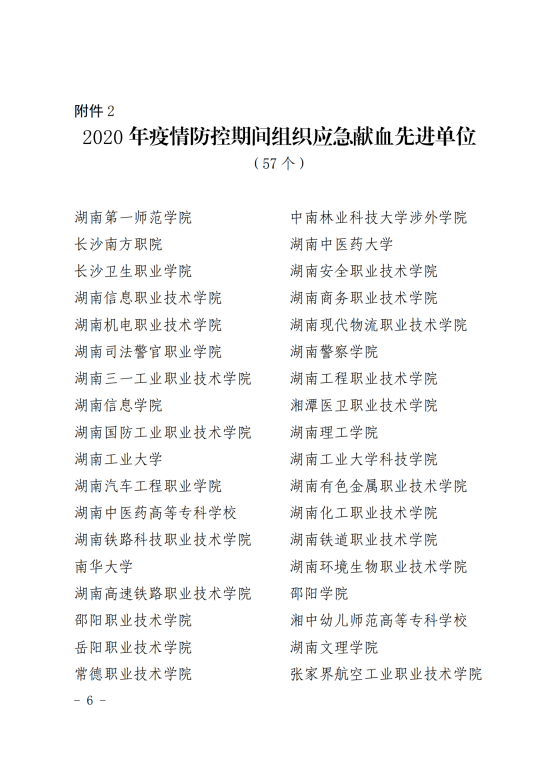 近日,湖南省卫生健康委员会、湖南省教育厅联合下发了《关于表彰2019-2020年度全省高校无偿献血先进单位和优秀组织者的通报》,对我省在无偿献血方面作出重要贡献的单位和个人进行表彰。