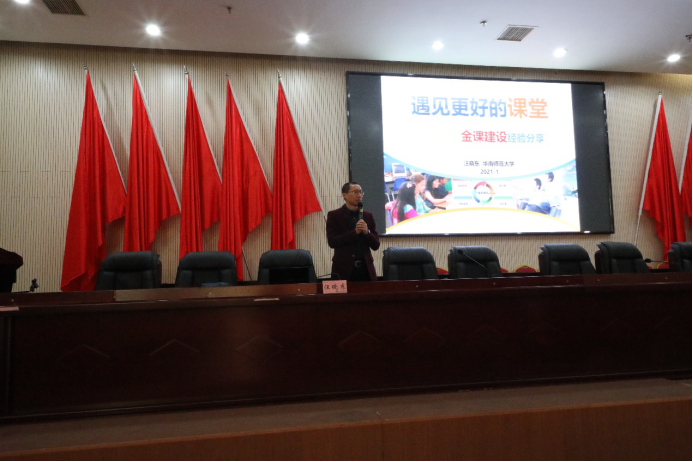 为贯彻落实全国高校思想政治工作会议精神,发挥高校教师落实立德树人根本任务的关键课程育人作用,引导教师传承和弘扬爱国主义精神,培养又红又专、德才兼备、全面发展的人民教师。1月13-14日,我校举办了“课程思政”和“金课”建设专题培训活动。活动特邀福建农林大学刘学莘博士和吴旭平博士“课程思政”教学团队,围绕“课程思政”的系列建设问题进行讲授。邀请华南师范大学教育信息技术学院未来教育研究中心教育技术学汪晓东博士,围绕混合式金课如何建设进行讲授。活动吸引了各有关二级学院院长、书记、副院长、教研室主任、专业带头人、骨干教师等370余人参加。原校长助理唐陶富作动员讲话,教务处处长卢璐主持培训会。