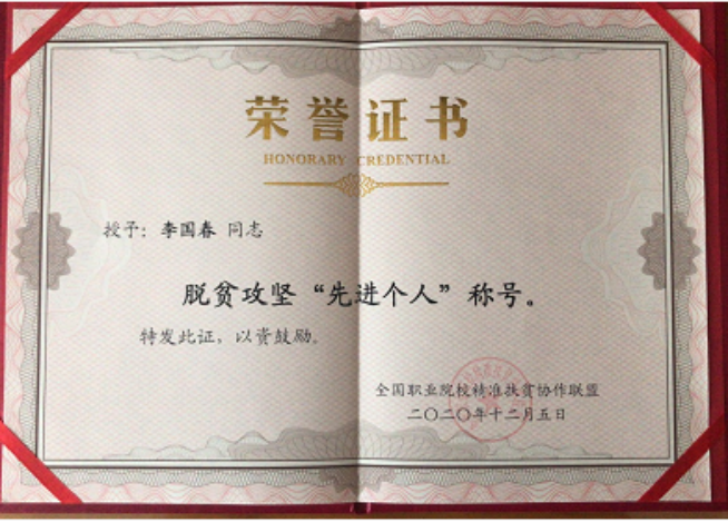 我校党委副书记李国春同志获脱贫攻坚“先进个人”称号,学校驻小金洞村帮扶工作队成周帆同志获“优秀通讯员”称号。