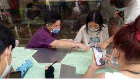 到达目的地后,同学们迅速换上了防护服进入工作状态。当天的气温高达37摄氏度,毫不透气的防护服里闷热难耐,感受到一股又一股的汗水往外冒,隔着防护服和无菌手套都能看见里面浸润的汗水。但是同学们克服一切困难坚持了下来,连续工作5个多小时,累计采集核酸样本3000余次。