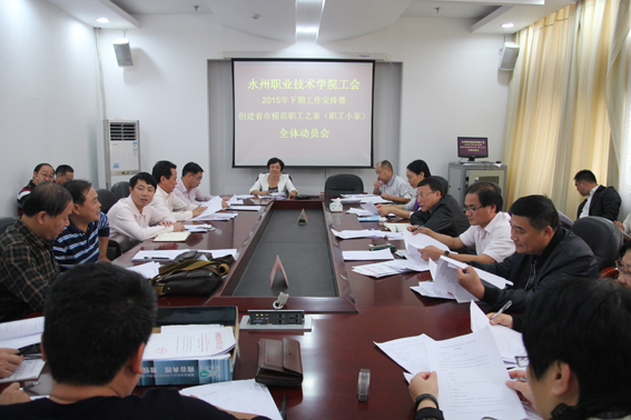 10月27日下午,学院工会在本部四楼会议室召开了2015年下学期工会工作安排暨创建省市模范职工之家、模范职工小家动员会议。
