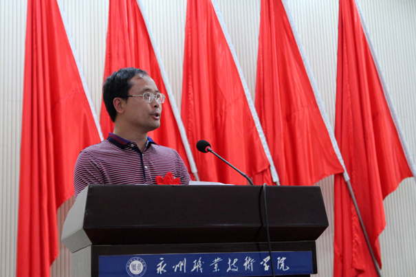 第一,强化党性意识,做坚定理想信念的表率。他强调,在学院“十三五”规划及申报湖南省卓越院校的关键时期,我们不光要深学马克思主义理论来坚定信仰,还当多看多学党史来坚定道路自信,更重要的是注意结合现阶段的工作,加强对党章党规和习近平总书记系列重要讲话精神的学习,争做一合格的党员,从而坚定全面从严治党和实现永职梦的信心。