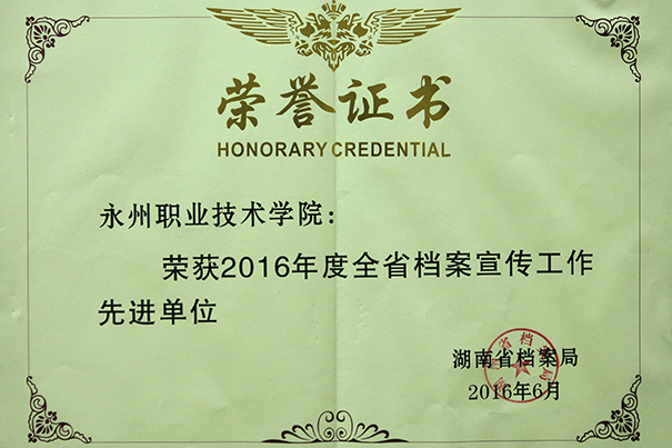 5月23日,省档案局下发《湖南省档案局关于表彰2016年度全省档案宣传工作先进集体、先进单位和先进个人的通报》(湘档通【2016】21号),我院荣获“2016年度全省档案宣传工作先进单位”。