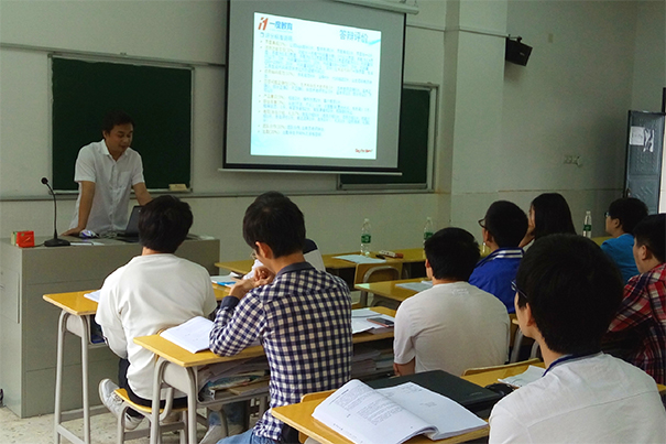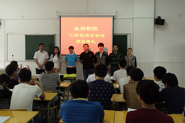 本次项目答辩由计算机系与长沙市一度软件教育培训学校(简称一度教育)联合举办,评委团由一度教育企业专业导师袁煜、计算机系专业教师共同组成。计算机系主任胡红宇、副主任马辉等到会指导。