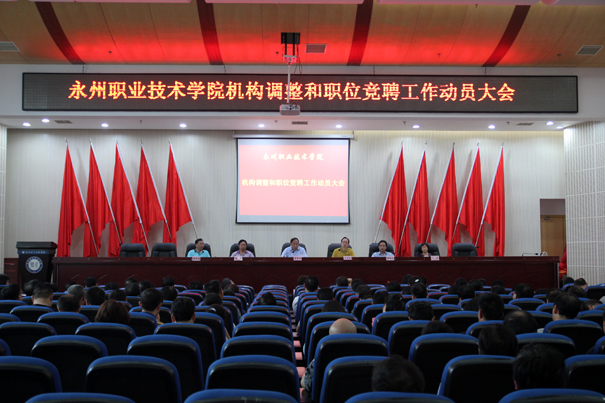 党委副书记李国春同志首先宣读了《永州职业技术学院机构调整和干部竞聘工作实施方案》,对指导思想、基本原则、组织领导、竞聘方式、竞聘职位、竞聘对象、竞聘条件、实施步骤、有关政策和纪律要求等各项环节作了详细说明。