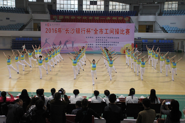 4月26日,由市文体广新局、市总工会、市直属机关工委联合举办的永州市工间操比赛决赛在市体育中心举行,来自市直单位45支队伍和县区的11支队伍,共2000余名运动员参与比赛。我院代表队参加了此次比赛。