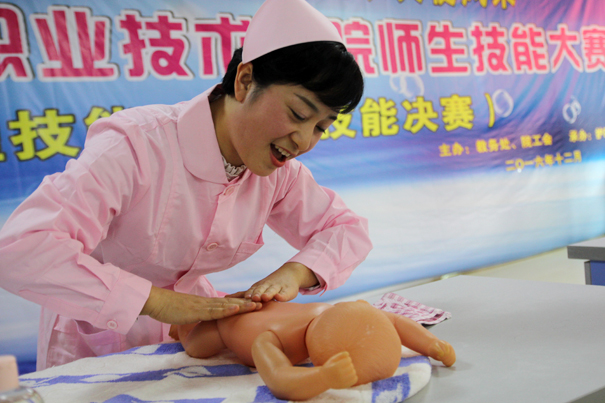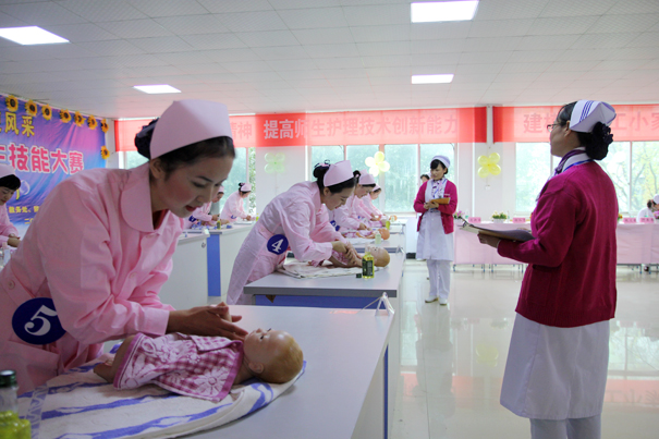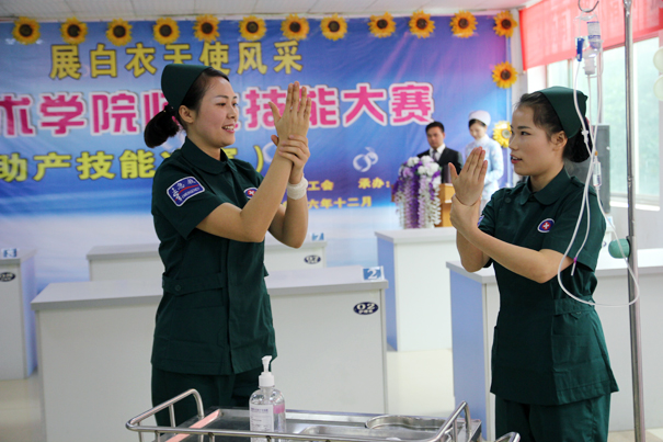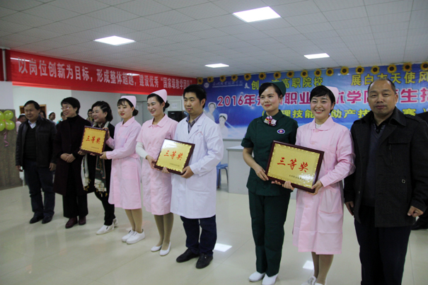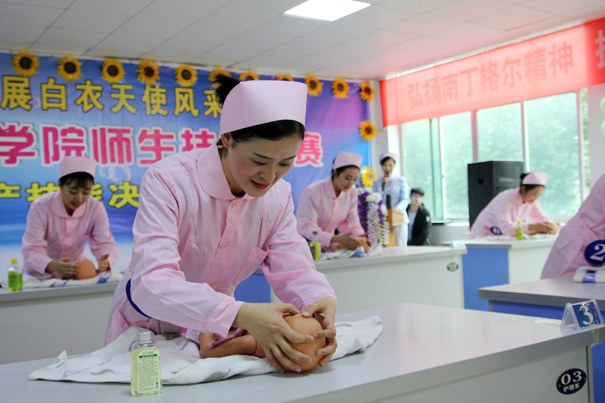 经过初赛,共10个团队进入决赛,每个团队由两名老师带领三名学生组成,决赛有护理和助产专业技能共5项。经过近3小时激烈角逐,评委们从操作技能的熟练程度、与患者的沟通交流、人文关怀以及应急反应能力等方面进行细致评判,评选出了团体奖与单项奖一,二,三等奖若干名。