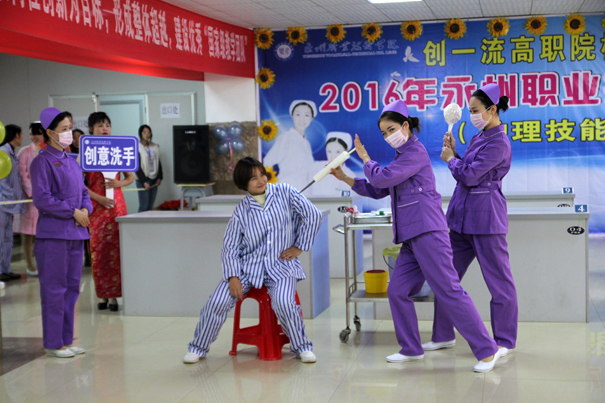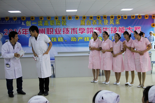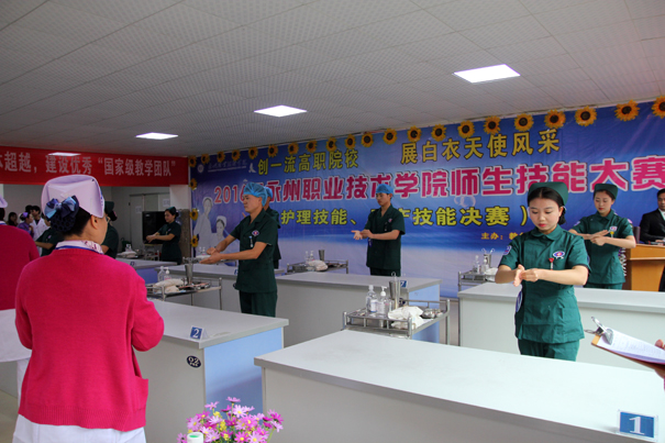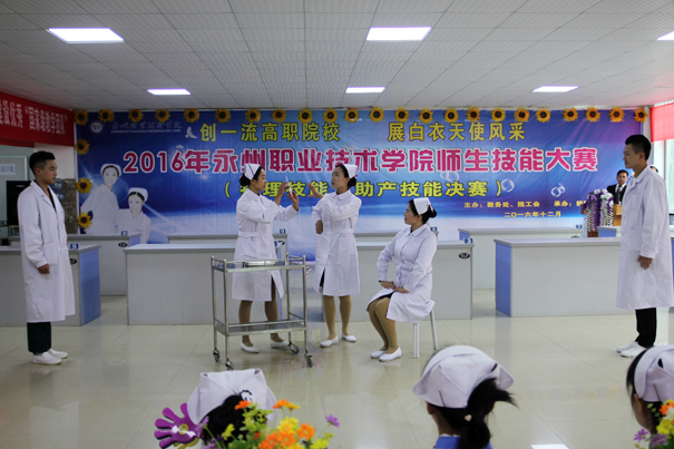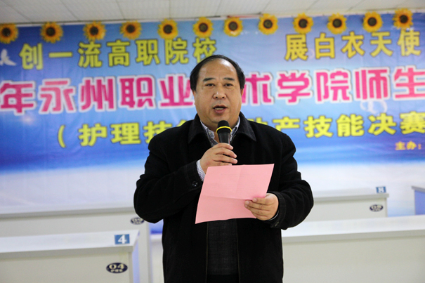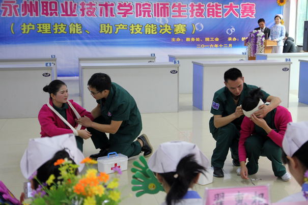 12月13日下午,由教务处、院工会主办,护理系承办的“2016年永州职业技术学院师生技能大赛—护理和助产技能决赛”在医学部隆重举行。院长翟惠根莅临赛场并作重要讲话。