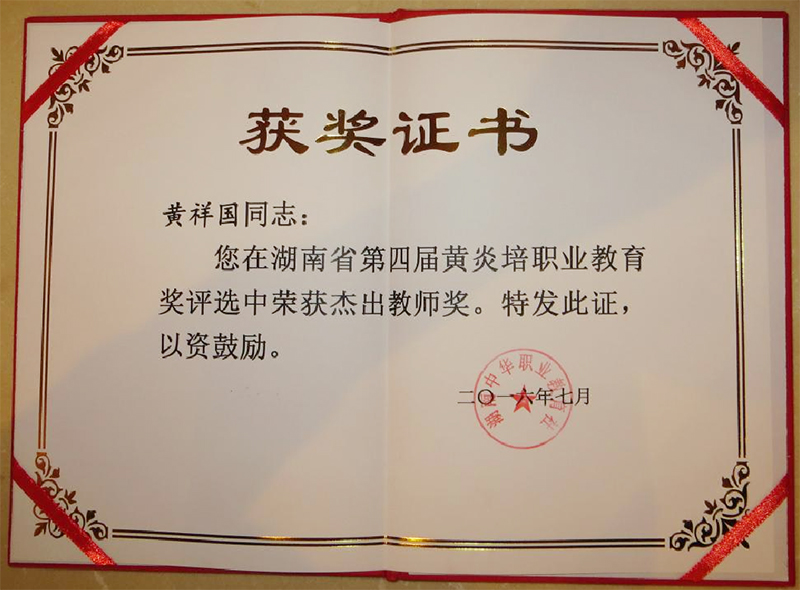 近日,湖南省第四届黄炎培职业教育奖评选活动在长沙圆满结束。我院医学影像与医学技术系主任黄祥国获“杰出教师奖”。