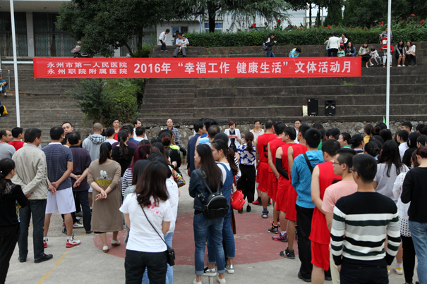 今年职工文体活动月的主题是“幸福工作 健康生活”。10月10下午5:30分举行了简洁而隆重的开幕式,在家的医院领导、运动员、裁判员及各代表队代表等120余人参加了开幕式。此次活动共设有男子篮球、女子气排球、男女混合拔河和羽毛球个人赛等4个比赛项目。由医院和1个特邀单位组成的6支男子篮球队、23支女子气排球队、5支拔河队和50余名羽毛球选手参加了此次活动。经过一个月激烈而精彩的角逐,最后男子篮球赛冠军由门诊代表队夺得,女子气排球赛被药剂科摘桂,男女混合拔河赛冠军由机关代表队获取,黄明辉、江彬和黄明辉/李群艳分别获得羽毛球男单、女单和混双第一名。