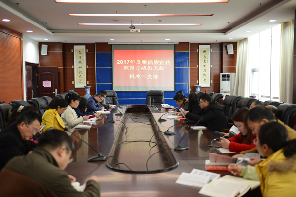 为切实加强廉洁文化建设,根据永职院党纪发〔2017〕3号《关于开展2017年反腐倡廉宣传教育月的通知》要求,3月9日下午,机关二支部在院本部三楼会议室召开了2017年反腐倡廉宣传教育月动员大会。