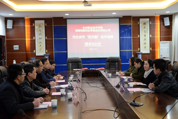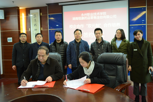 3月7日下午,我院与恒康医药集团有限公司校企合作订单培养签字仪式在办公楼三楼会议室举行。恒康医药集团董事长赵亚辉、财务副总刘奕彬、人事部长易兰、专员管林芳及学院院长翟惠根、副院长王中军等校企领导出席签字仪式,药学系相关负责人以及2016级“恒康班”部分学生代表参加了签字仪式。仪式由副院长王中军主持。