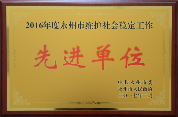 2016年,我院严格落实维稳综治工作责任制,全面落实维稳第一责任,进一步建立健全维稳工作机制,锐意进取,扎实工作,圆满完成各项维稳工作,有力地维护了全市社会稳定,为打造创新开放新高地,建设品质活力新永州创造了良好的社会环境。学院维稳工作取得新成绩,被永州市委、市政府授予“维护社会稳定工作”先进单位称号,汤文忠同志获评零陵区“内保工作”先进个人。