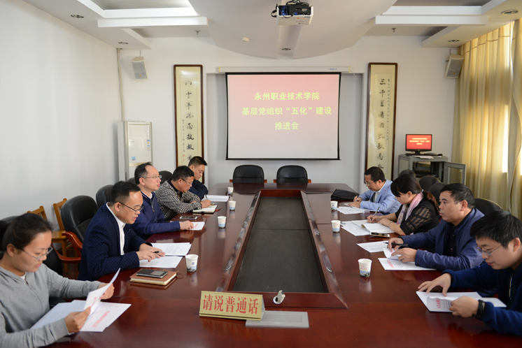 11月1日下午,学院基层党组织“五化”建设推进会在院本部办公楼四楼会议室召开。党委副书记李国春同志出席会议,组织人事部部长熊礼杭主持会议。院内基层党组织“五化”建设督查组成员以及组织人事部相关同志参加会议。