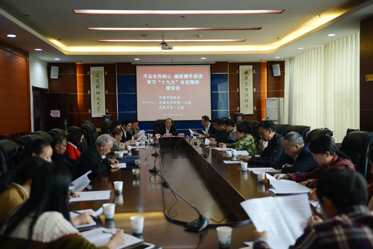 10月24日,“不忘合作初心,继续携手前进”学习“十九大”会议精神座谈会在我院举行。本次座谈会由民盟永州市委、民盟永州职院一支部和民盟永州市直一支部联合举办。永州市人大常委会副主任、民盟永州市委主委袁火林参加会议并发表讲话。民盟永州市委机关干部、民盟永州职院一支部和民盟永州市直一支部盟员参与学习讨论。学院党委副书记李国春、宣传统战部部长黄义君应邀出席座谈会。