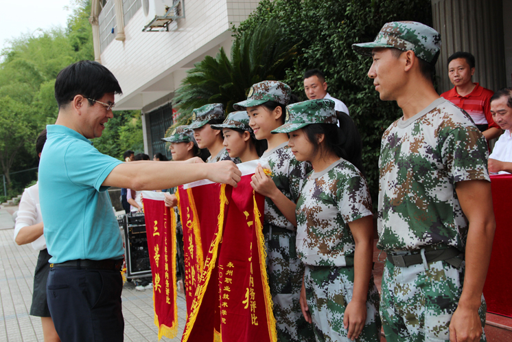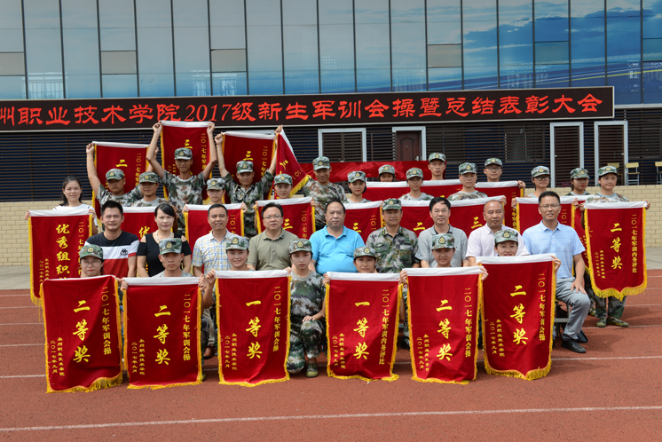 学院领导在会操比赛结束后发表讲话,指出这次军训能圆满成功,离不开参训部队领导、教官的大力支持和关心,离不开学院各相关部门的大力协助和支持,离不开全体新生的共同努力。学院领导希望2017级新同学在今后的学习、生活中,要保持军训中表现出的坚忍不拔的意志、勇于攻坚克难的作风、团结互助的团队精神,保持高度的组织纪律性,认真学好专业知识,苦练专业技能,全面提高自身素质,争做专业知识扎实、技能水平过硬、综合素质高超的高素质技能型人才。