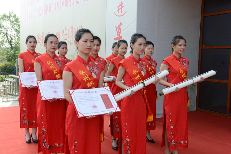 会上,一支受过专业志愿者培训的礼仪队和青年志愿者成为活动中一道亮丽风景。青年志愿者们身着红色传统旗袍,身披“永州职院欢迎您”的绶带,形体优雅、热情周到的为参加本次大会的来宾朋友提供志愿服务,充分展现了我院莘莘学子优良的综合素质。礼仪志愿者们也在这次交流会中走近国粹,感受中华传统文化的熏陶,提升了自己的人文素养。