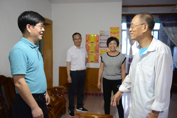 在庆祝中国共产党成立96周年、喜迎党的十九大胜利召开之际,7月1日,学院党委书记黄小明代表学院党委走访慰问我院老党员和困难党员,为他们送去党组织的关怀、问候和节日的祝福。党委委员、工会主席李晶,组织人事部长熊礼杭等陪同走访。