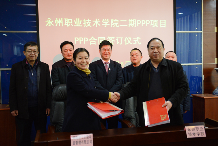 2月6日上午,学院二期PPP项目正式签约落地。学院党委书记黄小明主持签约仪式并代表学院致欢迎辞,湖南建工集团公司总经理助理王克祥出席签约仪式并讲话。学院党委副书记、院长翟惠根与湖南建工永新项目管理有限公司董事长黄绘霖作为双方代表签订了项目合同。永州市财政局党组副书记、副局长唐建华,党组成员、副局长谢交发,学院党委委员、纪委书记蒋衡湘,院长助理唐陶富出席签约仪式。