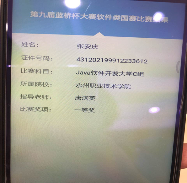 近日,第九届蓝桥杯全国软件和信息技术专业人才大赛(以下简称“蓝桥杯大赛”)全国总决赛在北京大学拉开序幕,来自北京大学、清华大学、南京大学、武汉大学等千余所高校的5000余名蓝桥杯省赛一等奖选手云集京城,角逐蓝桥杯的最高荣誉,永州职业技术学院计算机系张安庆同学斩获总决赛一等奖。