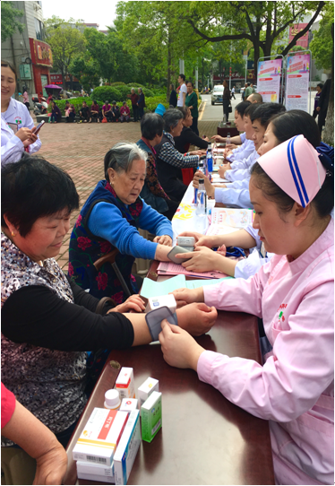 4月22日上午,我院附属医院党总支组织眼科、泌尿外科、骨外科、神经外科、中医肛肠科、心内科、神经内科等部门组成的党员志愿服务队在零陵区政府广场(徐家井社区)开展了“送医送药送健康进社区”义诊活动。