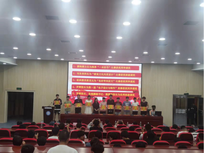 随后,对学风建设月系列活动中的推荐“一本好书”演讲比赛、教室文化风采设计大赛、良好学风征文大赛、第一届“电子设计与制作”竞赛等获奖班级和个人进行颁奖。