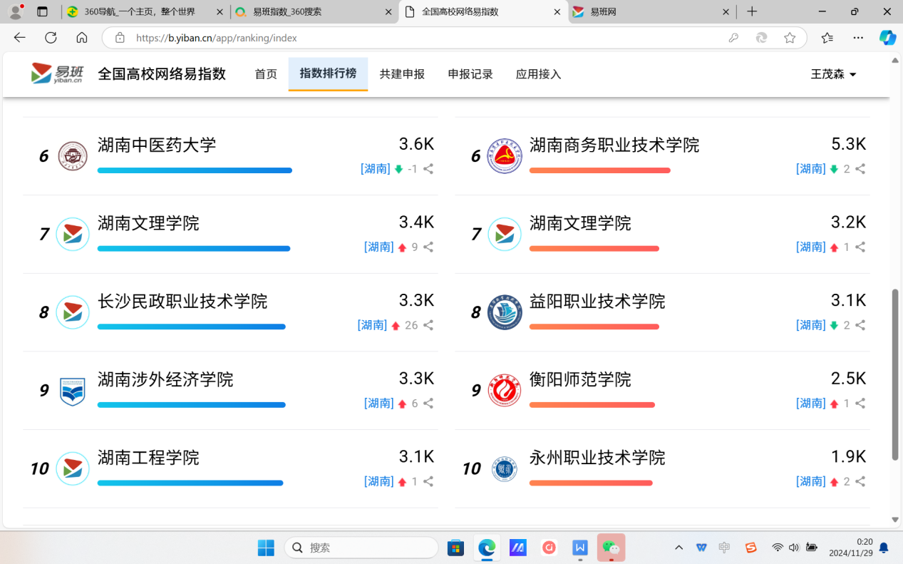 图:永州职业技术学院易班共建指数排名