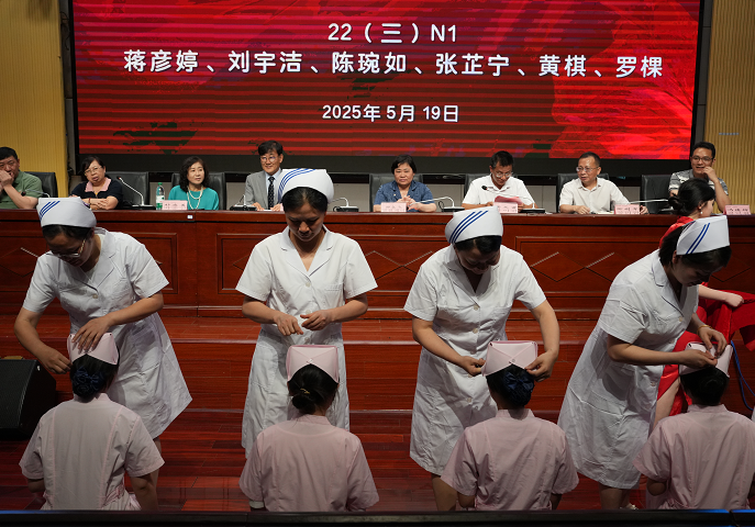 护理学院专业教师为毕业生举行授帽仪式