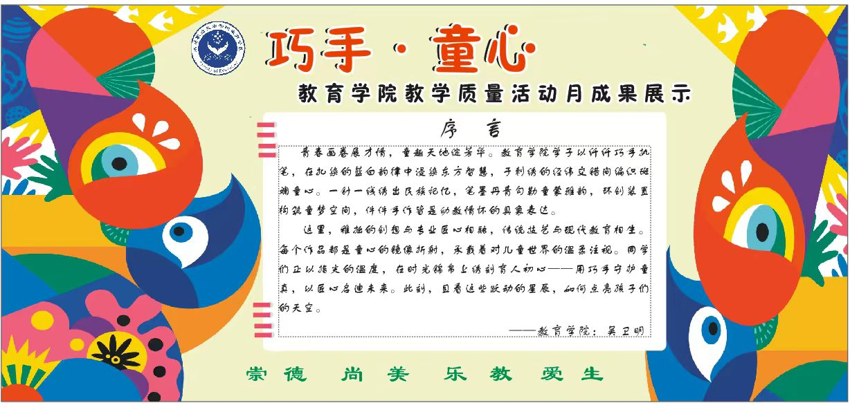 此次“巧手.童心” 教学质量活动月成果展示,是学院深化教学改革、提升人才培养质量的重要举措。未来,学院将继续秉持 “提质强师 弘技强生” 的理念,不断创新教学模式,加强实践教学环节,为培养更多优秀的教育人才而不懈努力。