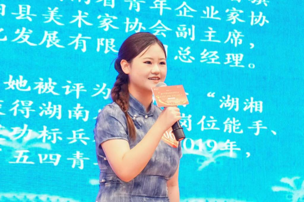 决赛现场,郭妍以“铜刀点蜡”工艺开篇,讲述苗家蓝草与汉家黄豆共生共荣的种植故事;又引入苗族姑娘在扶贫基地学艺脱贫的真实案例,用“200户整体脱贫”的翔实数据,印证民族团结的实践成果。她时而娓娓道来讲非遗传承,时而慷慨激昂阐释共同体理念,辅以蓝印花布实物展示,最终赢得评委“内容扎实、感染力强”的高度评价。