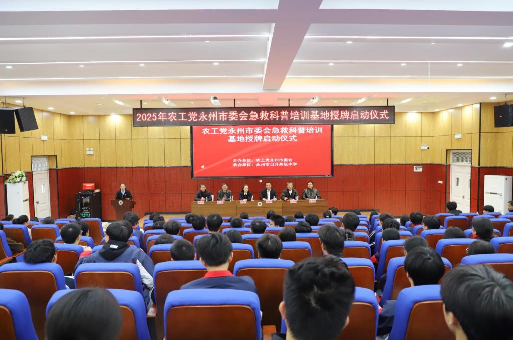11月11日下午,由农工党永州市委会主办的“农工党永州市委会急救科普培训基地授牌启动仪式”在永州日升学校举行,农工党永州市委会专职副主委张秀文,永州职业技术学院宣传统战部副部长王曙明,农工党永州市委会副主委、永州职业技术学院附属医院(永州市第一人民医院)副院长周振、农工党永州职院支部党员以及永州日升学校师生等百余人参加了活动。