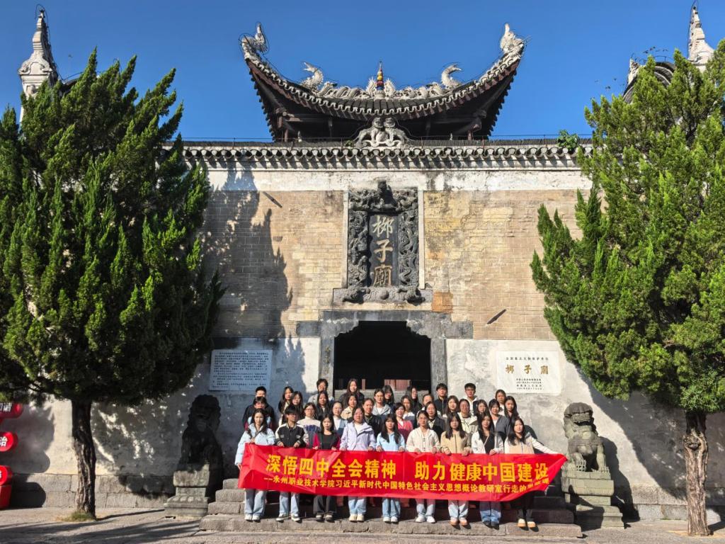 永州职业技术学院马克思主义学院立足永州“潇湘红脉”与“千年文脉”地域优势,创新打造“一课一地一专业”行走的思政课堂。将《习近平新时代中国特色社会主义思想概论》《思想道德与法治》《毛泽东思想和中国特色社会主义理论体系概论》三门核心课程,分别与医学影像技术、农学、工程类专业结合,落地柳子庙、永州党史军事陈列馆、李达故居三大实践阵地,让思政教育精准对接专业特色,实现理论学习与职业素养同频共振。