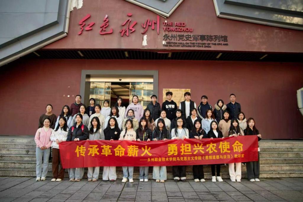 柳子庙内,教师以柳宗元“民为邦本”的理念为引,结合医疗惠民政策,引导学生思考影像技术如何服务基层医疗、守护百姓健康;永州党史军事陈列馆里,农学专业学生透过革命文物重温永州儿女的奋斗史,将“艰苦奋斗、服务民生”的革命精神与现代农业发展、乡村振兴实践相联系;李达故居中,工程学院学生循着先辈追求真理的足迹,探讨工程建设如何践行“以人民为中心”的发展思想,筑牢职业责任与家国情怀。