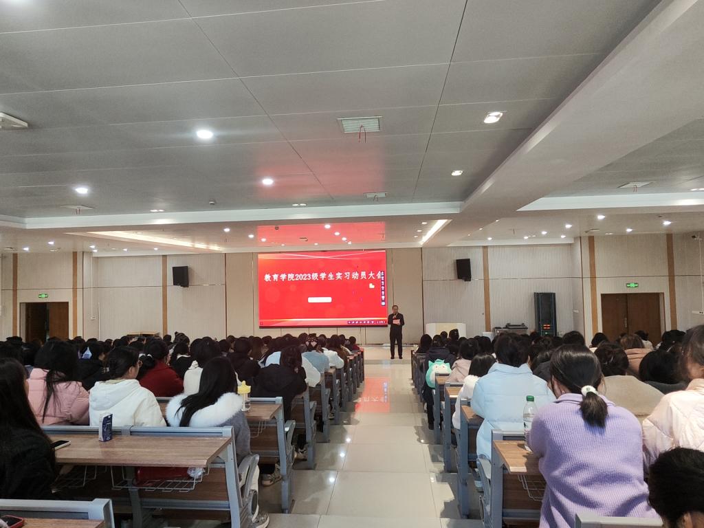 为扎实推进2023级学生岗位实习工作,助力学生明确实习目标、转变实习就业心态、提升职业竞争力,11月28日下午,教育学院在综合教学楼A200阶梯教室举行2023级学生岗位实习动员大会,教育学院主要负责人、各毕业班级辅导员及2023级全体学生参会。