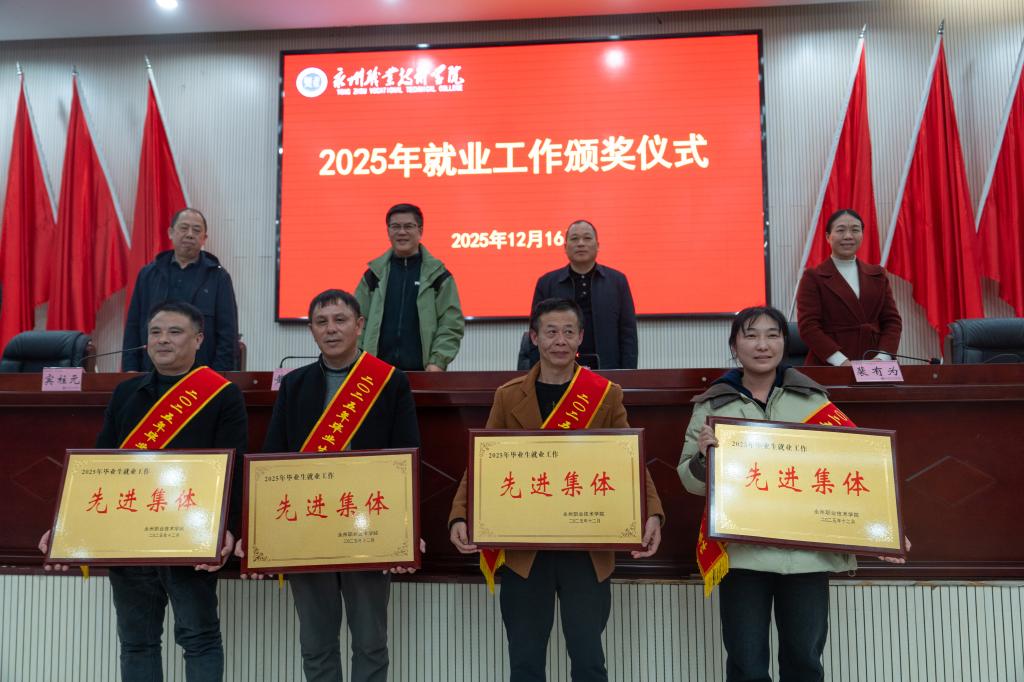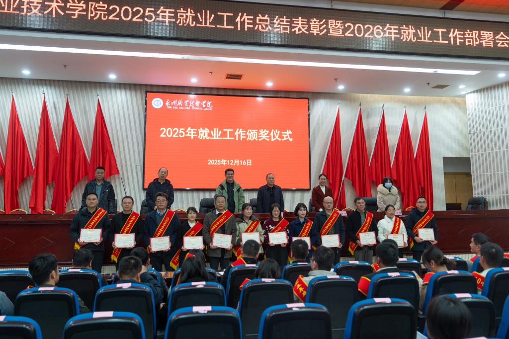 为深入贯彻党中央、国务院关于高校毕业生就业创业工作的决策部署,全面总结2025年就业工作成效,表彰先进典型,精准部署2026年重点任务,12月16日,永州职业技术学院隆重召开2025年就业工作总结表彰暨2026年就业工作安排部署会。学校党委书记黄小明、党委副书记李勇,党委委员、纪委书记宾柱元,党委委员、副校长裴有为,党委委员、宣传统战部部长黄义君,党委委员、组织人事处处长罗素琼,各职能处室、教辅机构正科以上中层干部,二级院部副科以上干部,2025届、2026届毕业班辅导员,招生就业指导处及创新创业中心全体人员参加了会议。会议由党委副书记李勇主持。