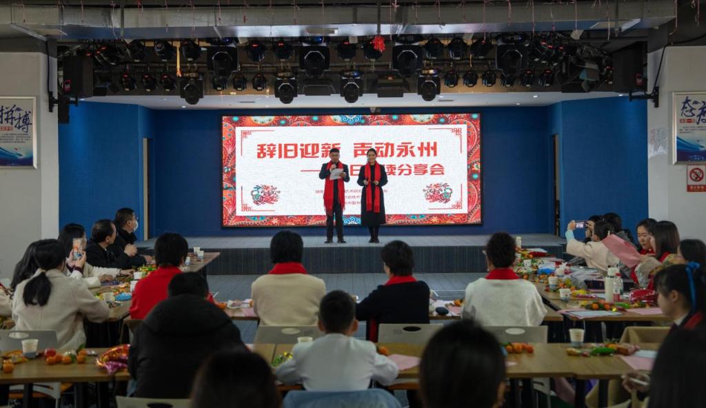 12月28日下午,“辞旧迎新,声动永州”冬日诵读分享会在永州职业技术学院图书馆五楼报告厅温情举行。活动由湖南省大众语言艺术研究会永州工作处、永州职业技术学院、永州市图书馆联合主办,旨在以诵读传递心声,以艺术点亮生活,营造书香永州的浓厚文化氛围。