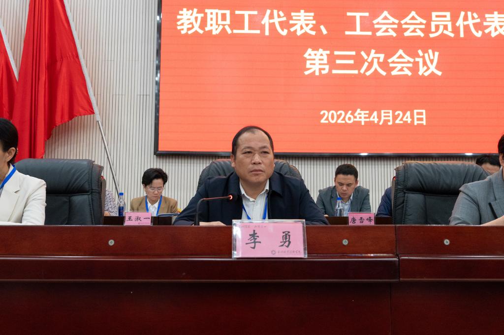 4月24日,永州职业技术学院在校本部召开第五届教职工代表、工会会员代表大会第三次会议。在家校领导、全体代表、特邀嘉宾、列席代表齐聚一堂,共商学校发展大计。会议由党委副书记李勇主持,市总工会党组副书记、副主席李永甜应邀出席并讲话。