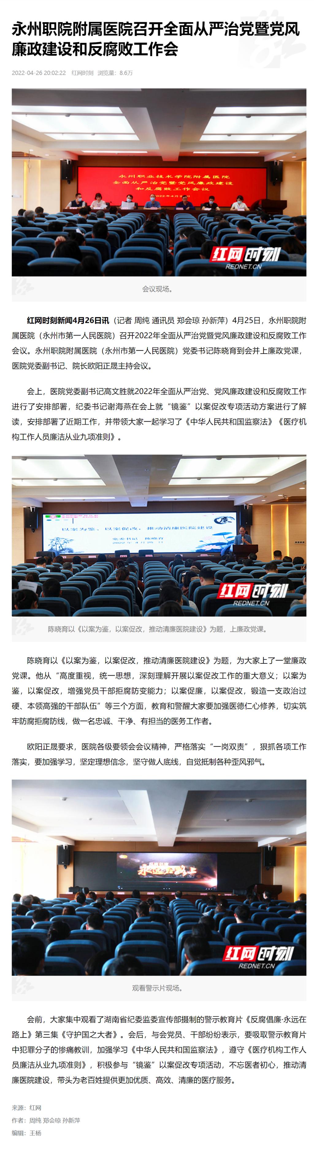 【红网】永州职院附属医院召开全面从严治党暨党风廉政建设和反腐败工作会
