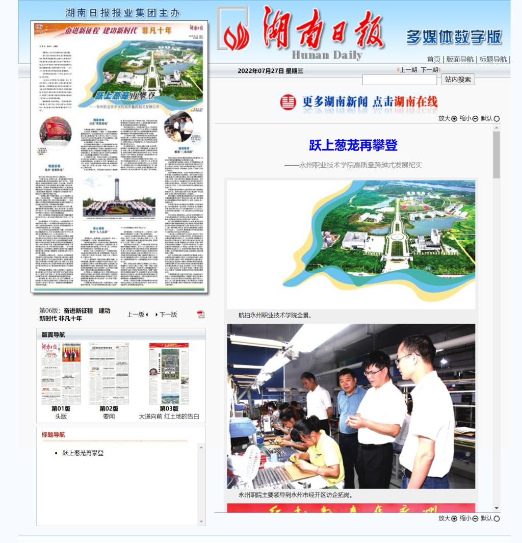 服务区域社会经济发展是高职院校的重要使命,也是永州职院高质量跨越式发展的题中之意。
