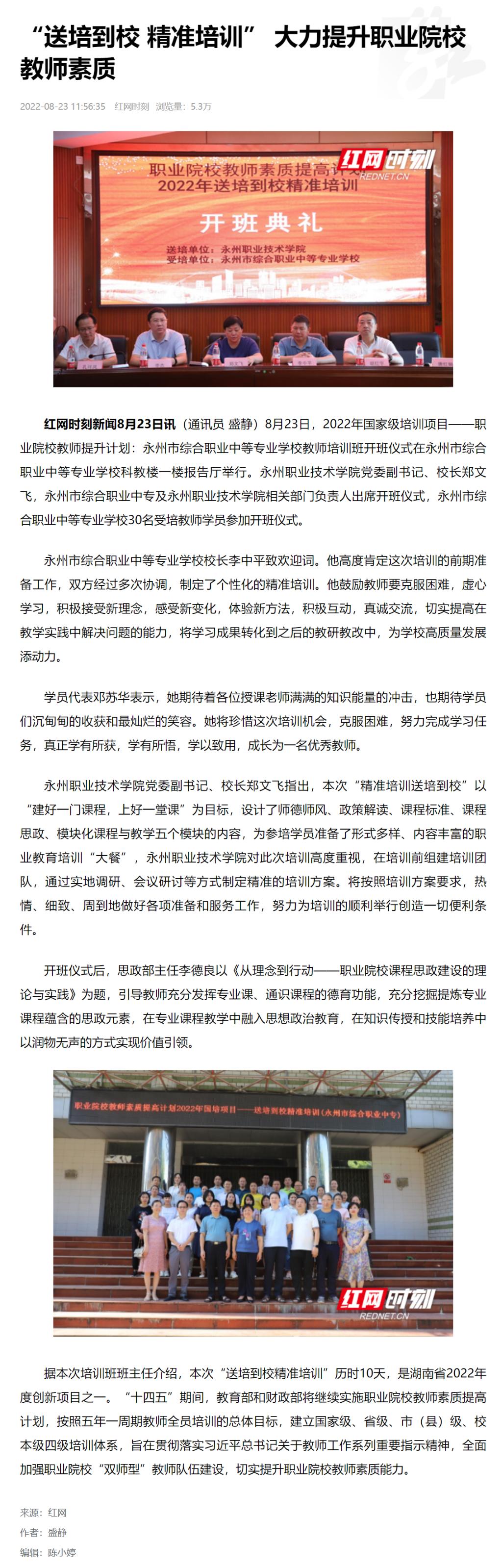 据本次培训班班主任介绍,本次“送培到校精准培训”历时10天,是湖南省2022年度创新项目之一。“十四五”期间,教育部和财政部将继续实施职业院校教师素质提高计划,按照五年一周期教师全员培训的总体目标,建立国家级、省级、市(县)级、校本级四级培训体系,旨在贯彻落实习近平总书记关于教师工作系列重要指示精神,全面加强职业院校“双师型”教师队伍建设,切实提升职业院校教师素质能力。